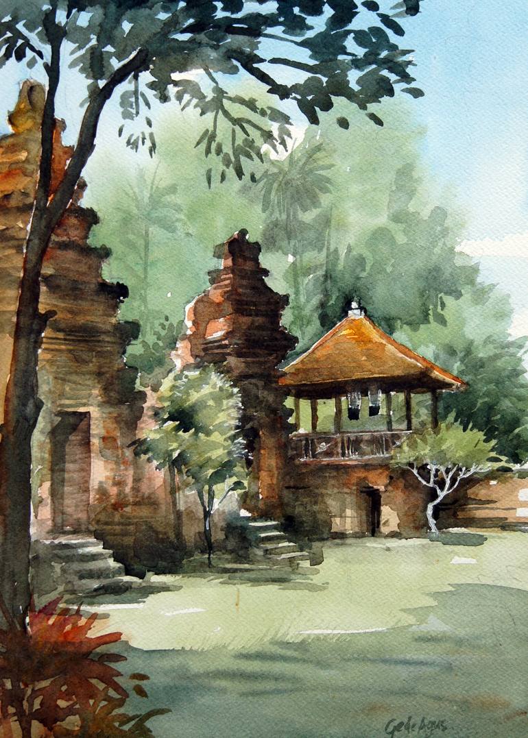 On the spot painting Dalem Mutering Jagat Temple located in Kesiman, Denpasar, Bali. It is one of the local community temple