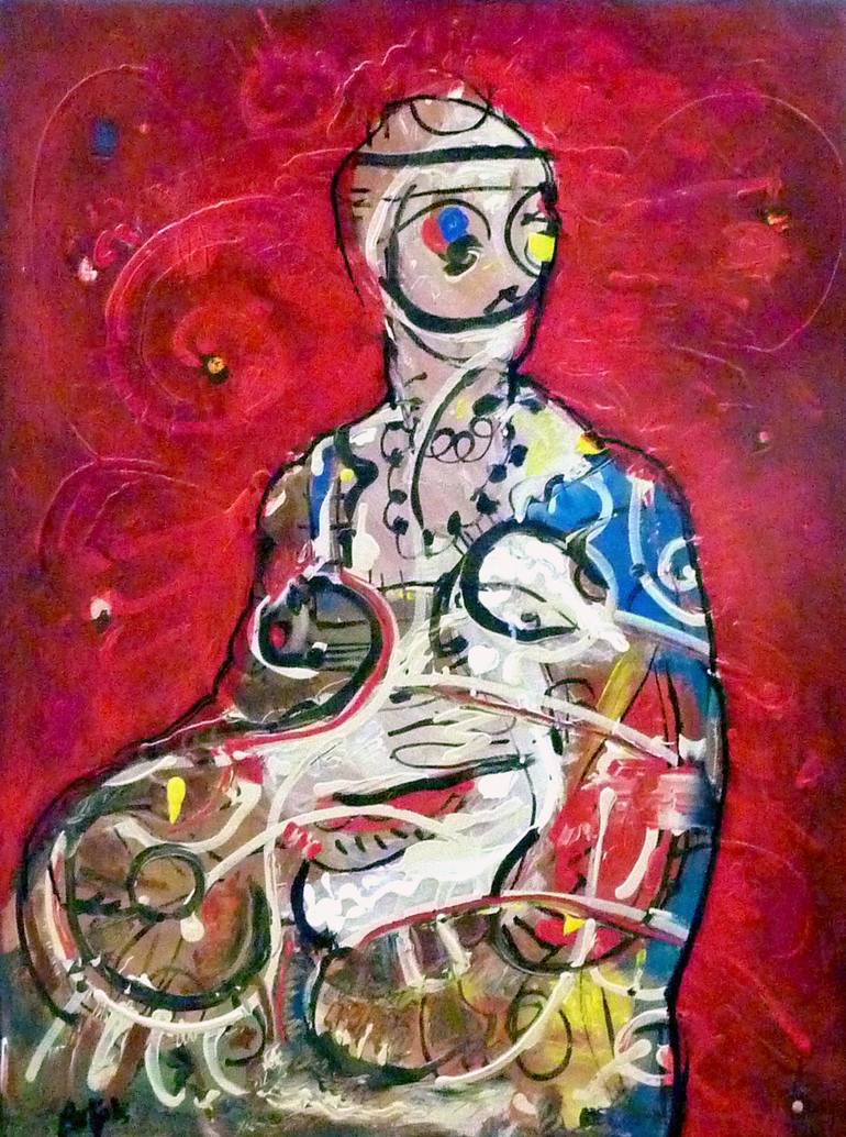 This is a canvas from 2011. A Leonardo Da Vinci canvas, is inspiration for Antoh This is the shape of Famous "Dama con ermellino" filled up with contemporary art...and contemporary style...and contemporary thoughts... of course in my Style. The humans don't change so much in the centuries. Their sty...