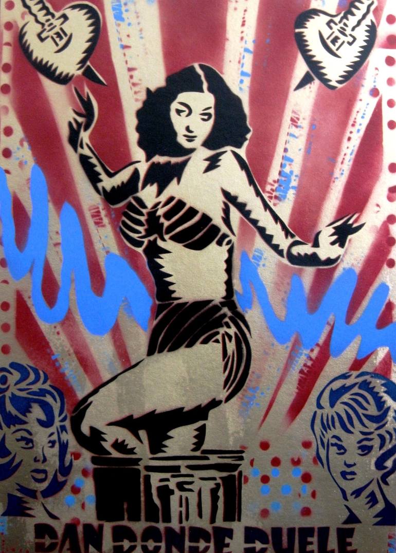 CARLOS MADRIZ - PAINTER - PRINTMAKER (b. 1972 CARACAS – VENEZUELA) Born and brought up in Caracas, in the mid-80's Carlos started experimenting with drawing, etching, silk-screen printing, design, painting and Street Art. It was at this time that he developed the skills and techniques needed to handle the 'X-Acto' blades that became his constant companion for creating stencils, a defining characteristic of his artwork. He began producing small and medium size prints, small, medium and large paintings, and then murals. In the early 90's, Carlos began studying at Caracas Advanced School of Arts and at the same time became involved in a number of projects born out of the local punk rock scene, including the design and creation of fanzines and posters and band merchandising activities such as designing and printing tee-shirts. In the mid-90's he moved to San Francisco, California, where he completed his studies in painting and printmaking and took part in various collective mural projects, taught workshops and exhibited his artwork in a number of group shows in spaces such as Balazo Mission Badlands Gallery, Mission Cultural Center for Latino Arts (MCCLA), Atelier Golgotha, SoMa Gallery and City Arts SF. Then in 2000 he moved to London. Here he worked teaching art workshops for young people, painting murals and showing his work at exhibitions in socially-committed cultural centers in Brixton, a neighborhood in south London. In 2002 he moved to Lecrin Valley in the province of Granada, southern Spain, where he lives and works today. The inspiration for Carlos' work comes from the Latino American popular culture in which he grew up and from the rebellious, non-conformist energy which surrounded him at the beginning of his career. These influences are still present in his work, spiced up with a touch of biting, sometimes hard-hitting, humor. Carlos does not consider himself so much an artist as a maker of images, free from pretensions and power trips, and this makes his work accessible to a wide audience.
