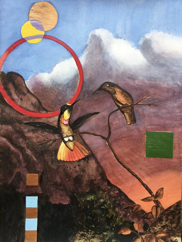 In this watercolor I explore the classic way of painting but in a new method, applying geometric elements and colors, creating in this way a new atmosphere and porpuse.