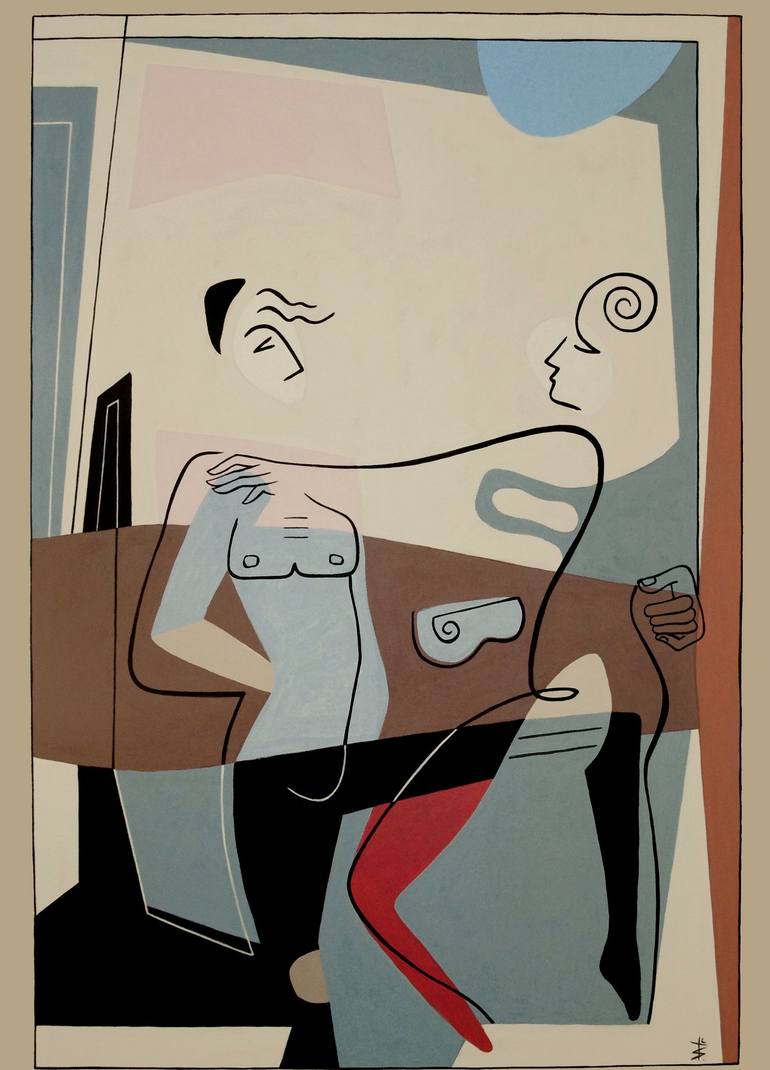 Bernard Simunovic is a Croatian designer and artist, living and working in Germany and Croatia. One of the most compelling aspects of Bernard's art lies in the delicate balance between complexity and simplicity. Each piece is meticulously crafted to present a visually captivating composition that immediately draws the viewer's attention. However, upon closer inspection, the intricate layers and details reveal a deeper complexity beneath the surface. Bernard achieves this harmonious interplay by employing a combination of bold, vibrant colors, refined forms, and minimalistic lines. The simplicity of the black or colored contour line serves as a unifying element throughout the body of work, guiding the viewer's gaze and infusing the pieces with a sense of cohesion. It acts as a visual thread that weaves through the artworks, connecting diverse subjects and narratives. The deliberate use of minimalism in Bernard's works also allows for open interpretation and invites the viewer to actively engage with the art. By stripping away extraneous details, Bernard encourages a focused examination of the core essence and concepts within each piece. This deliberate simplification enables the viewer to delve deeper into the underlying emotions, themes, and messages conveyed. However, beneath this apparent simplicity lies a hidden complexity. Bernard's art is layered with multiple dimensions and subtle intricacies, revealing itself gradually to those who take the time to explore. Each stroke, color choice, and compositional element is carefully considered, contributing to a deeper narrative that unfolds upon closer examination. The juxtaposition of complexity and simplicity in Bernard's works creates a dynamic tension that captivates the viewer. The initial impression of simplicity draws one in, but the intricacies and nuances within the art prompt a prolonged engagement. Bernard's art is a delightful dance between the accessible and the enigmatic, the immediate and the hidden, offering a rich and rewarding experience for those who engage with it. In summary, Bernard's works masterfully balance complexity and simplicity, captivating the viewer with their visually striking compositions while inviting deeper exploration and interpretation. The interplay of minimalistic lines, refined forms, and intricate layers creates a captivating tension that resonates long after the initial encounter with the art.