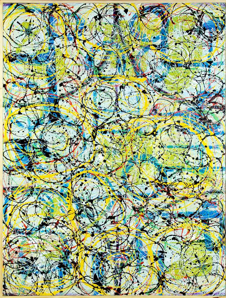" dance " is on canvas has paint dances across the canvas with flow and energy and joy This painting is now on display in Sotheby's Pasadena CC