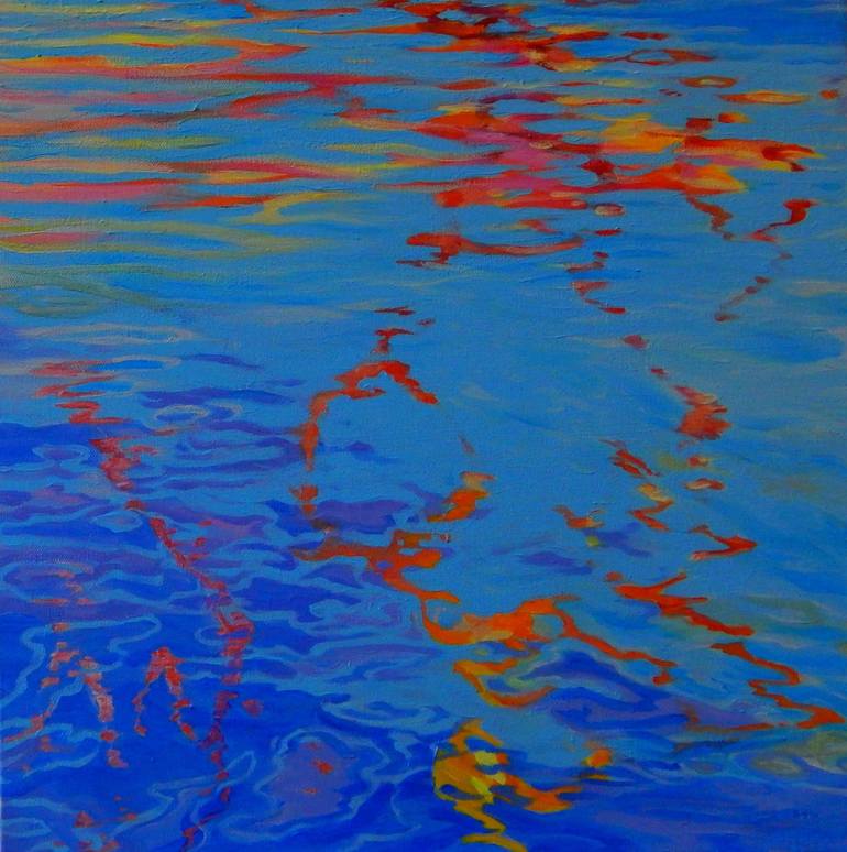 Water is a recurring element that inspires me. Dancing on Water is my response to the spontaneous reflected imagery I see as I walk the shoreline. The sunlight and wind movements abstracts the images and I wanted to explore the shapes and patterns created as they seems to dance on the water.