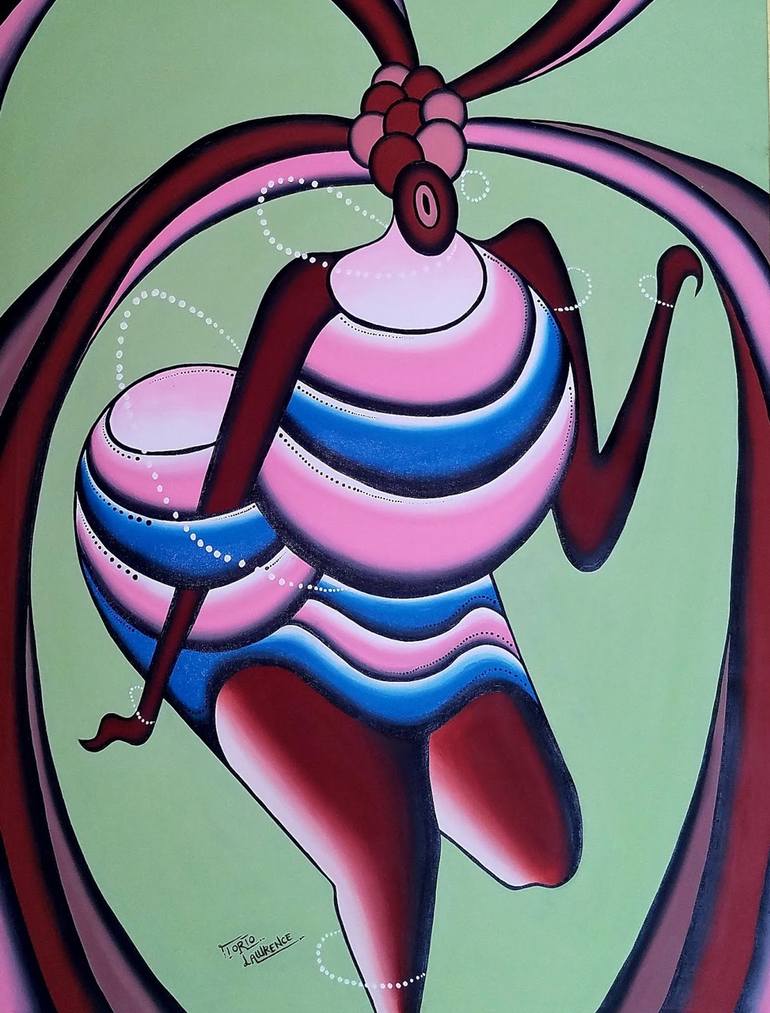 Painting with Acrylic on canvas. work portrays a traditional African female Dancer, dancing beautifully to an African melodic songs