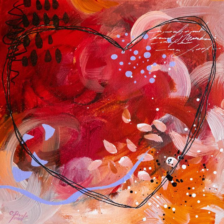 Acrylic and crayons on canvas 25 X 25 X 4 cm (10 X 10 X 1,5 inches) Varnished to protect against U.V. Sides: in continuity with the artwork. Ready to hang or to frame. Shipped in a cardboard box with a certificate of authenticity. I work in a spontaneous, intuitive and gestural way, where the unco...