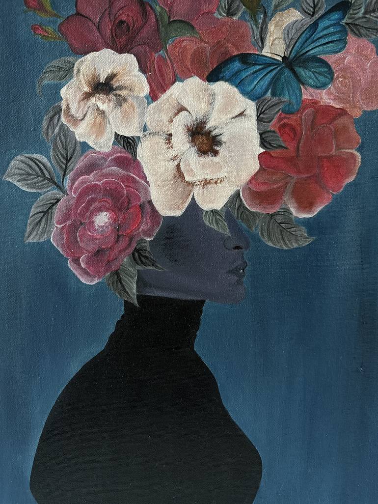 The inspiration behind this painting is the idea of feminism. The inner power inside every girl is sweet and beautiful which will help her to grow in her life.