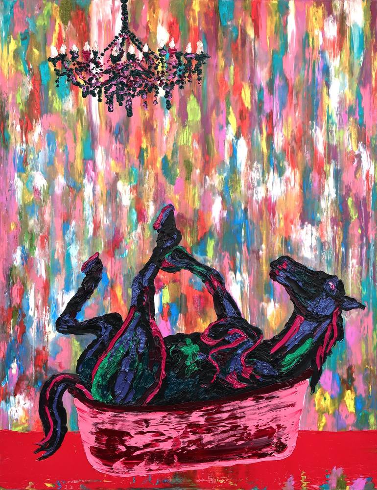 The "Dark Prince" is a spectacular work, part of the Horses Series by Dominic Virtosu. A powerful and deep artwork that invites introspection. On a blurry, rich and colorful background, the figure of the luxurious spoiled horse defines itself through thick and heavy dark colors. A closer inspection...