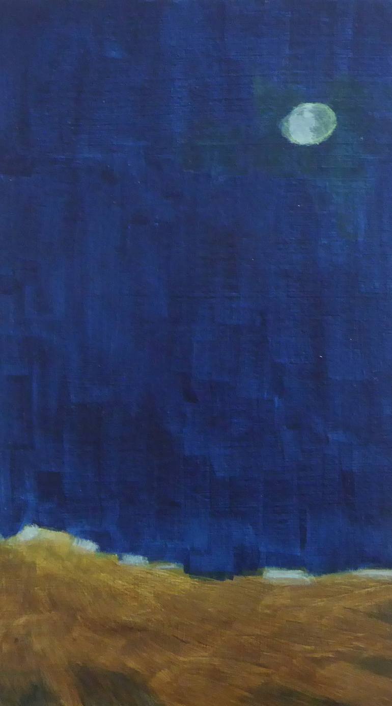 Experience the quietude of "Dark night, light night - skyscape," an abstract landscape illuminated by the moon's gentle glow. This original acrylic painting captures a moment of stillness and silence. Created en plein air with acrylics on cardboard, this piece embraces both minimalism and modern ab...