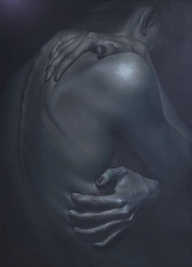 At the beginning and end of the color, there is 'Black' at its peak. The Darkness series is a work of finding light in the dark. Following the light that seems to be visible in the dark, it fiddles with the shape of a subtle female body, creating it with the fingertips and exhaling breath as if sculpting. Through the process of occlusal, the color may be bluish, mixed with gray, or finished with an inexplicable color. Thoughts and emotions also have their own sounds. The noise in the world we see and hear with our eyes, such as news, magazines, signboards, languages, texts, and video clips, is indeed superficial and invasive. I want to be safe from various media, media, and the noise in the world emitted like smoke. Through the visualization of emotions, we tried to capture the silence of emotions and the peace of emotions. You will hear a sound in my painting, too. However, I hope it is a very small whisper as if eager.