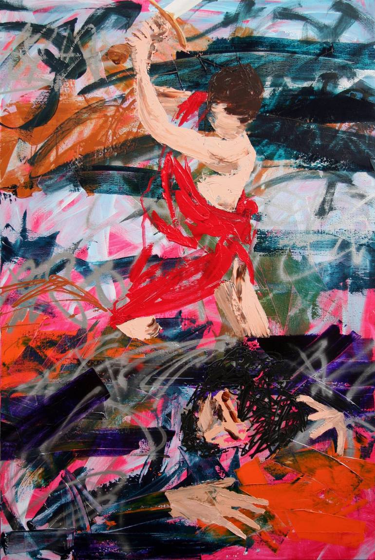 David and Goliath : aerosol paint and acrylic on canvas, 195 x 130 cm, 11/2012.