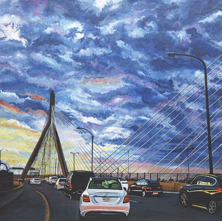 Western Avenue Studios and Lofts 160 Western Avenue Loft 214 Lowell MA I grew up in the foothills of the Berkshire Mountains in Connecticut and began lessons with oils when I was nine. Now my chosen medium is acrylics because they work well in my traveling lifestyle. My path has offered the opportunity to live in several states, the Carolinas, California, Virginia, Texas, Hawaii, Kansas, and Massachusetts. My paintings have found homes as far away as Japan, Norway, and South America. The years I spent as a linguist in the US Army and a Marine Corps dependent gave me the gift of travel. Browsing my portfolio is holding postcards from my life. Hanging my work in your space is a window to something that clung to my heart and mind long after I moved on my path. I explore in ever widening rings from where I am, I am a witness to that time, that place. I have moved 19 times and lived in nine states. I am about finding the small spaces, hidden places and mercurial skylines, returning at different times of day. The effect of the light is of special interest to me. Reflections in water, glass, ice, a polished floor offer the kinds of challenges I want to master. I prefer working on a larger canvas, building them to complement the subject. I want to see a very small phenomenon grow mighty and beautiful. I stretch my own canvases using medium weight unprimed cotton canvas on Blick standard or Best heavy duty stretcher bars. I prefer to choose each painting's dimensions and shape. I prime my canvases with Golden black gesso. The final surface is protected with Windsor Newton satin varnish. I use Liquitex acrylics in soft and heavy body diluted with Golden airbrush medium, water and Golden acrylic medium gels. I trained for years in oil paints but switched to acrylics to accommodate my traveling lifestyle. WASAA Western Avenue Artists Association Artist Member Whistler House Museum of Art/Lowell Art Association Artist Member USVAA United States Veterans’ Artists Alliance Advisory Board Member