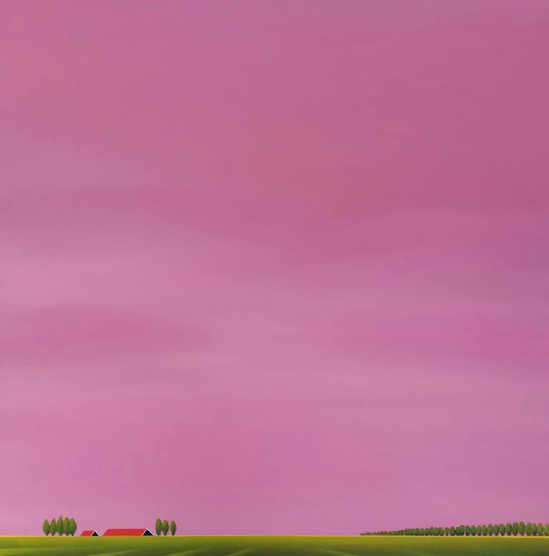 A glorious start of the day, the first sun rays are touching the land, the roofs of the farm are firing red. This is my polder, every moment different, every day new. My Zeeland, famous for the special light. "The landscapes of Van Nieuwenhuijzen are extensive, born from an intense experience of th...