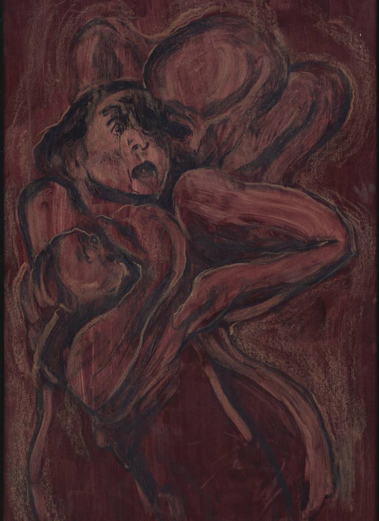 I have studied Painting at Athens School of Fine Arts. The essence of my painting procedure is to make sure of the well being of my very self struggling and fighting through the masses of this world. That stands as my principal cause to paint. Furthermore, painting is the answer to myself-demolish and through creation I am able to eliminate this demolition. I am fascinated by dreams, blood (literally), silence, love, addiction, repentance, death. These are my resources, my hints, my quest; what my work is based and depended on. That is how I can find some light within the darkness and how darkness turns into bright light to me.