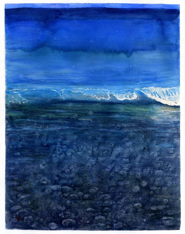 August on south cost of Crete, where the sea is so warm, salty and so colorful. Watercolor on 300 gm Hahnemuhle Britannia paper.