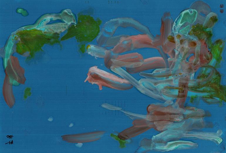 “Deep Sea Meditation” emerged from a diving holiday in Sharm el Sheikh. This abstract piece captures the essence of diving through vibrant colors and expressive brushwork. Ideas from Taoism and Zen flowed into the work.