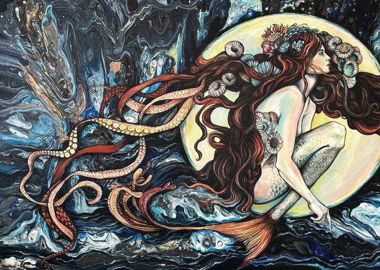 In creating this piece, I sought to capture the mystical energy of the sea, intertwining it with the grace of a mythical siren. Each stroke of my brush breathes life into the swirling ocean waves and the vibrant tendrils of the mermaid's hair, symbolizing the untamed beauty of nature. This painting ...