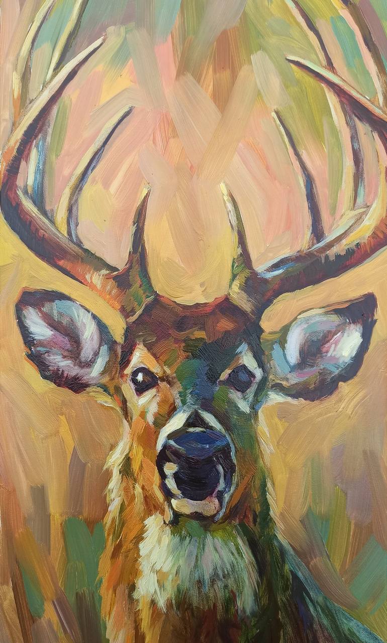 When I was painting this picture, I imagined how I was walking in the autumn forest. And, suddenly, on the way I met the figure of a red deer with powerful and spreading antlers. It is this image that I tried to convey in my picture - the image of a real autumn.