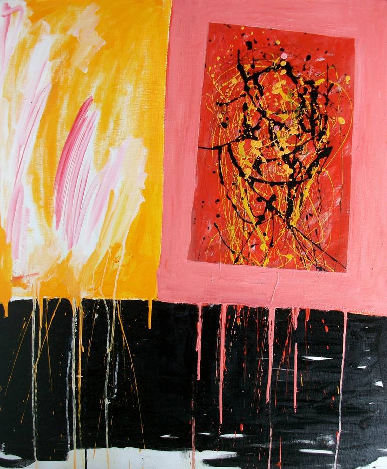 (three canvas = one canvas) Cm 100 x 81, 2012. Created in Paris, France. There is a red painting at the wall of a room. It's a canvas composed with three hand-sewn canvases.