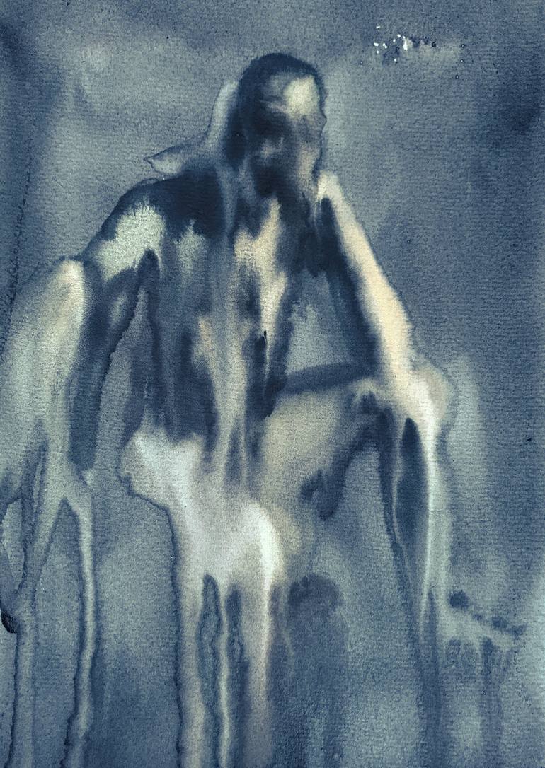 Deliquesce, is part of a watercolour series titled "Shift". The sense of apparition and mist emerges and dissipates as the softly defined figures evolve. I wanted to explore through the medium of watercolour, as it can be soft and sensual, and lend itself to a sense of the surreal.