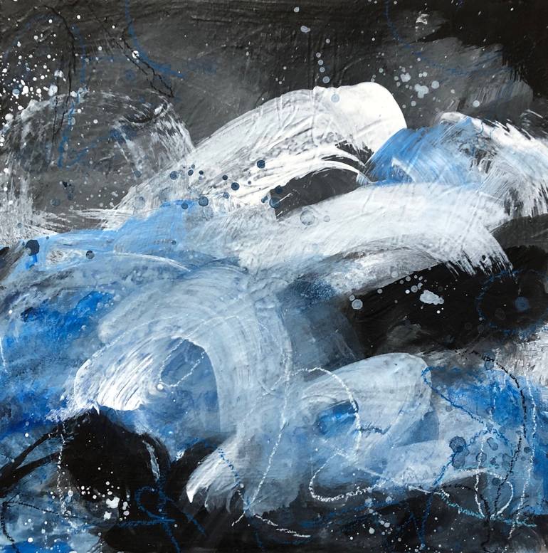 Abstract mixed media painting on canvas inspired by a week of torrential rains. This piece has layers and movement that feel the waves and is ready to frame and hang in any space.
