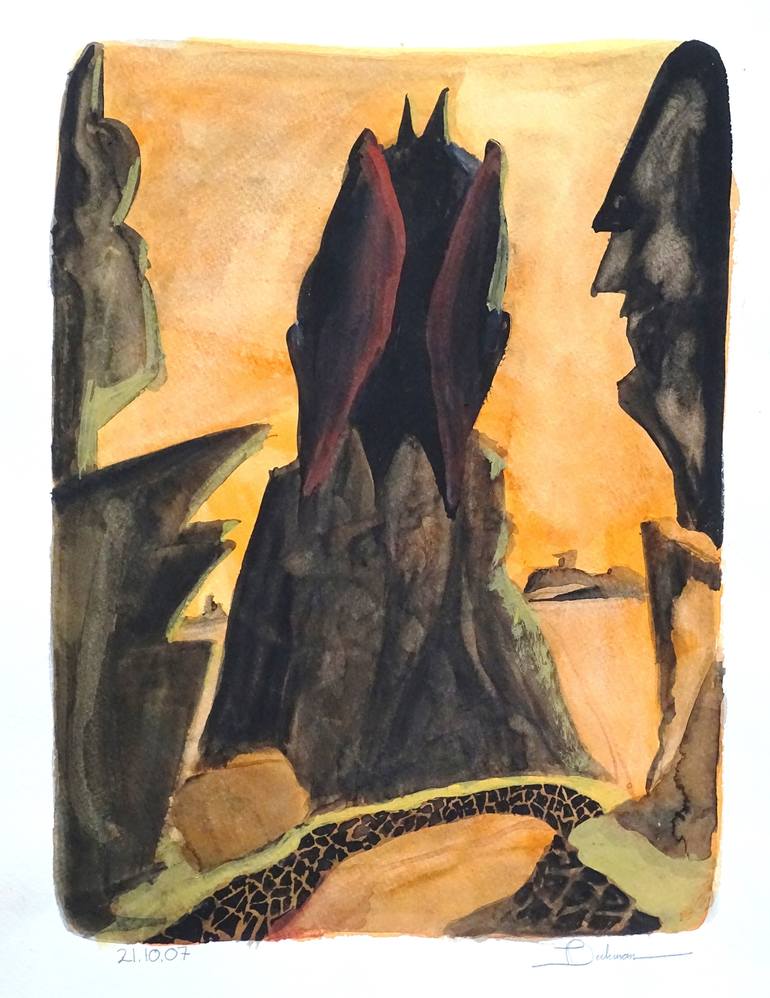 The desert at daybreak, glimpsed only by the night train. An open ticket for the sleeping car, no cameras allowed. Barely seen at first, the boulder perhaps a studio prop, the last yawning glance fades back. John Ford is home, asleep. Out beyond the farthest bluff, George Herriman plants a fire ...