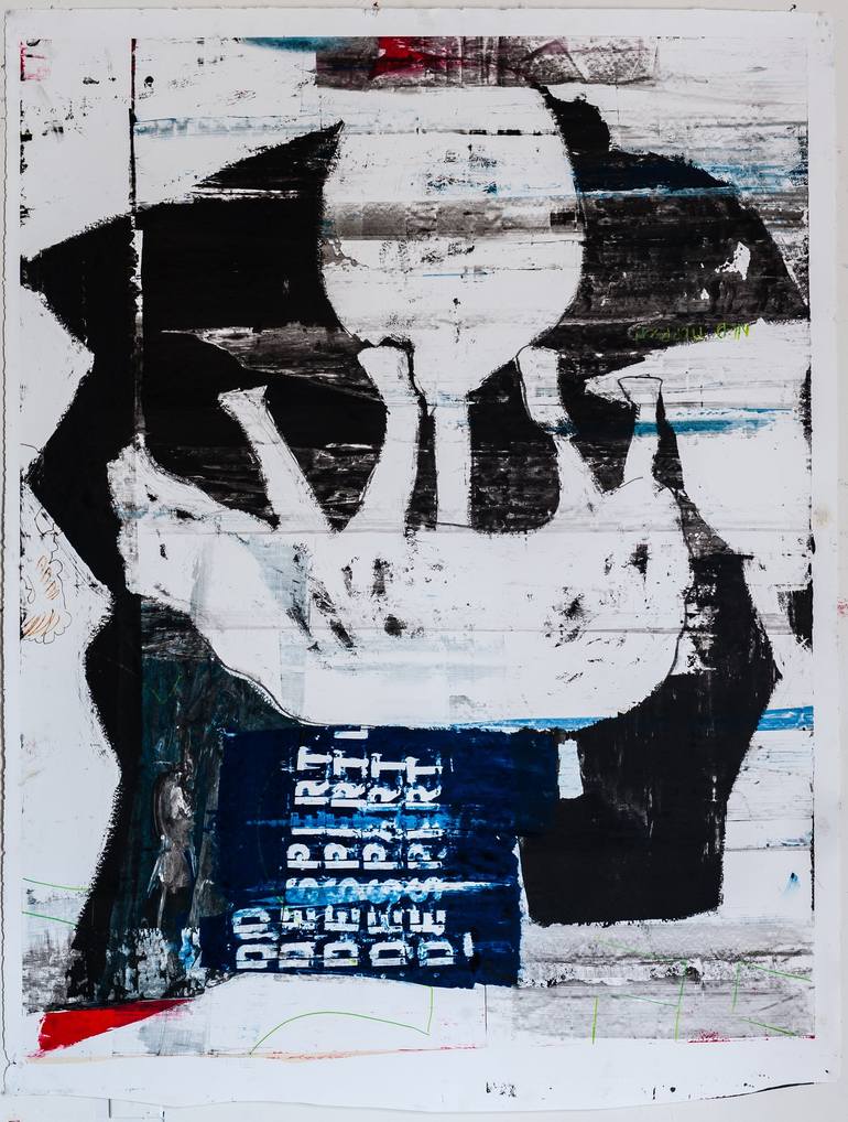 Work on paper. The rough appearance is to play with the idea of poster art. the images are ambiguous and they can be read in many ways.