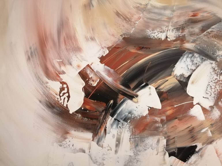 This "Dusty" artwork shows a minimalistic Motive in moving look. A spatula artwork for prints and coming soon in series. The beige painting shows a bit of the spatula work in a purist style and contains black, brown, beige and white color tones. #helleabstrakekunst #miniprintsonlinewebshop #kunstd...
