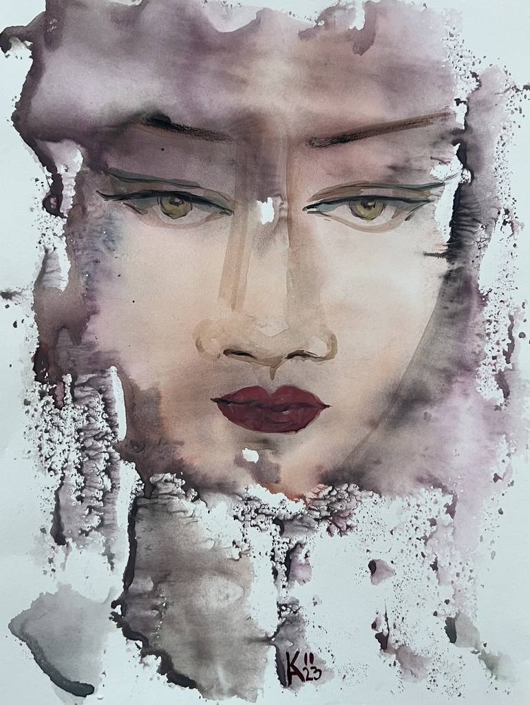 This striking watercolor painting captivates with its emotive and introspective depiction of a captivating face. The central figure's pensive expression conveys a sense of inward focus and determination. The title "Devotion" suggests unwavering commitment - perhaps to a cause, belief, or internal jo...