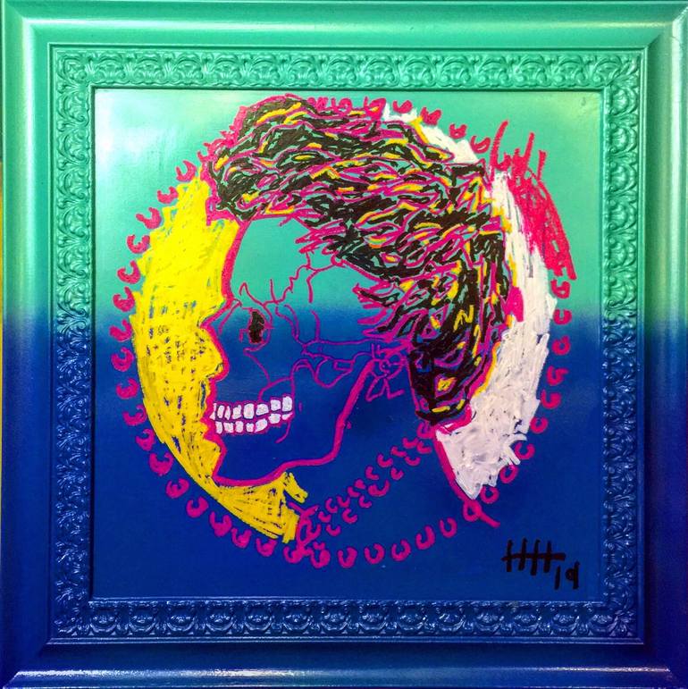 Eddie Love’s work resists easy explanation — a vivid collision of color, texture, and meaning balanced with recurring motifs & gestures in distinct styles that intriguingly demand engagement yet feign aloofness. His mixed-media pieces pulse with frenetic energy, blending abstraction with raw social commentary. Layers of bold strokes, unexpected materials, and cryptic text explore chaos, decay, and modern life; inviting viewers to decode their own truths - embodying what can be described as Socio-Pop art. The presented works are diverse in character, statement, and media. Whether on large unstretched canvases or smaller structured surfaces, Love’s prolific work is an unfiltered stream of consciousness—immediate, overwhelming, and undeniably compelling. For those willing to step into the storm, his art lingers long after you’ve looked away.