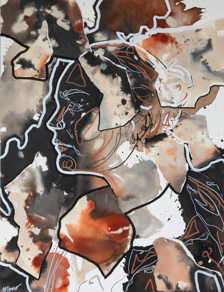 "Dichotomy no.2" continues the themes of the "Two Faced" collection which explores the dichotomy of the faces we put on for the world and those that we only know. The Dichotomy paintings were completed on watercolor paper mounted on panel and placed in a black floating frame ready to hang.