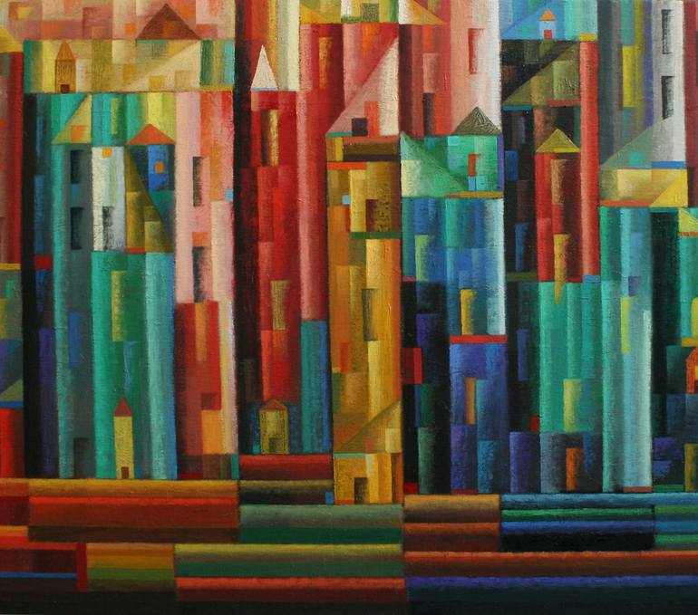 The paintings belong to a serial "City" which remains the artist about his home country Georgia
