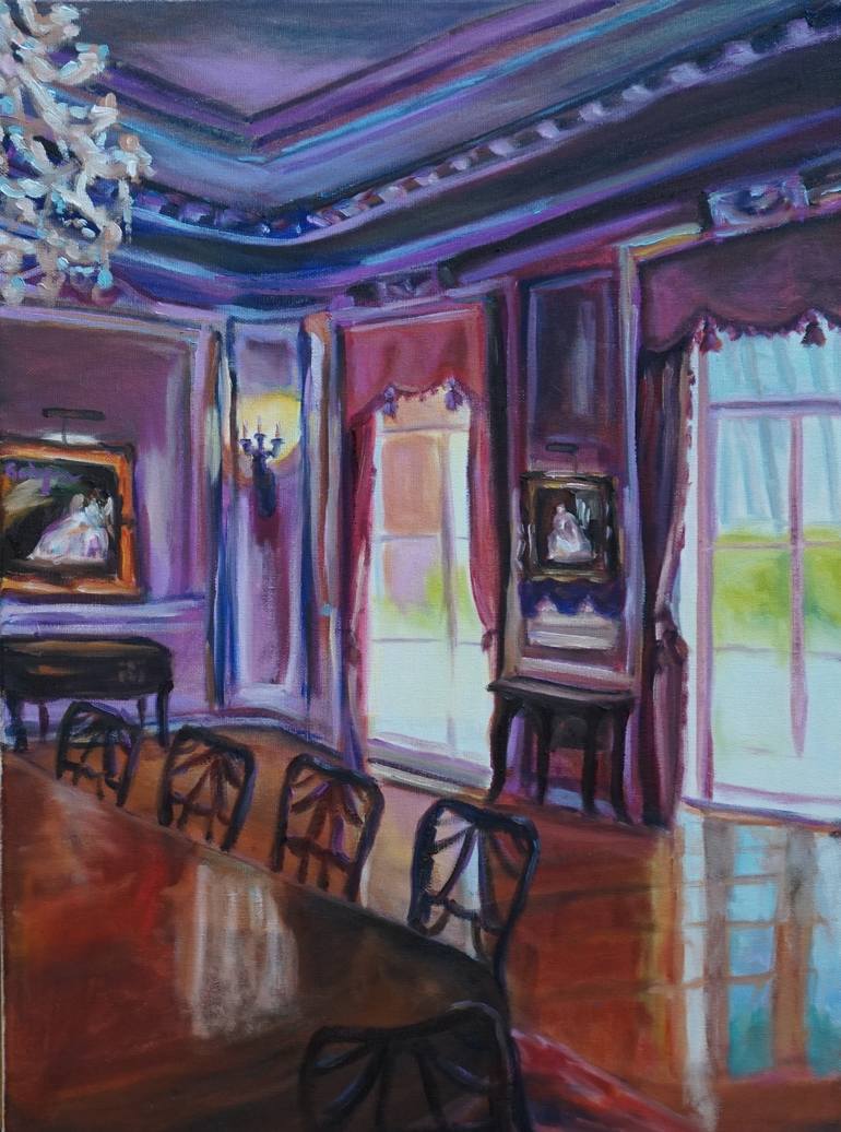 If you ever get a chance to visit the Hungtington Library and Gardens, then definitely go! This is one of the rooms at the estate. I took a photo of this room while visiting the estate, then worked on the painting at my home studio. I really like how the light is pouring in from the outside. The ref...