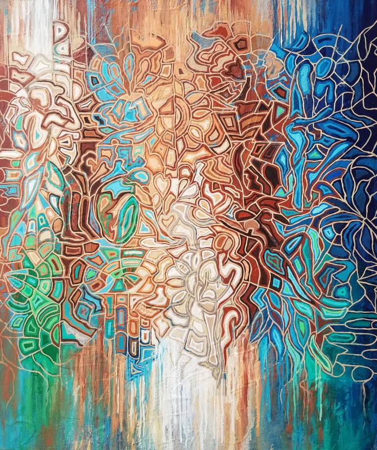 I chose to depict my mother's thinking processes in the dripping portions of my painting as her memory is fading day by day. Although, her disease is progressing, sometimes I wonder if she is at ease or at peace more than the average person. People struggle over minute situations without realizing t...