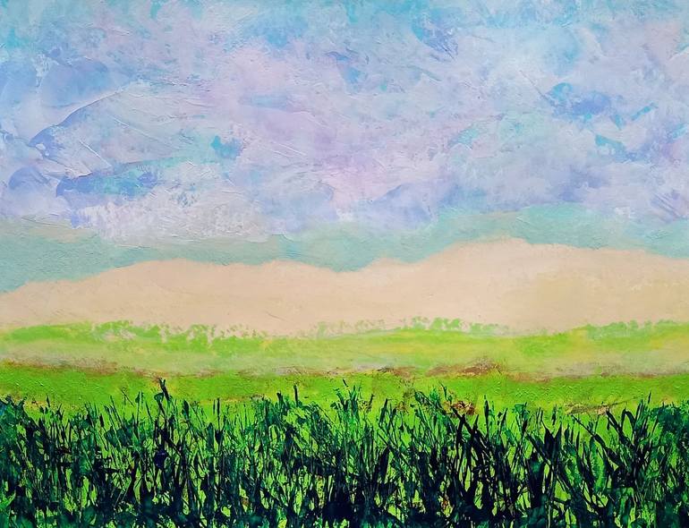 Memories of childhood, growing up in the country. Blue, lavender, light teal and white skies. Lush green flields. The highest quality professional paints were used. A signed and dated Certificate of Authenticity is included. The painting is signed and ready for framing. Please contact me if you ha...