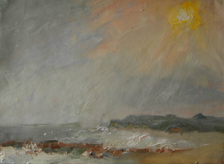 This was painted on a cold afternoon in a light fog as the sun was beginning to set. The painting is in oil on canvas mounted on a wood panel and is ready to hang framed or unframed.