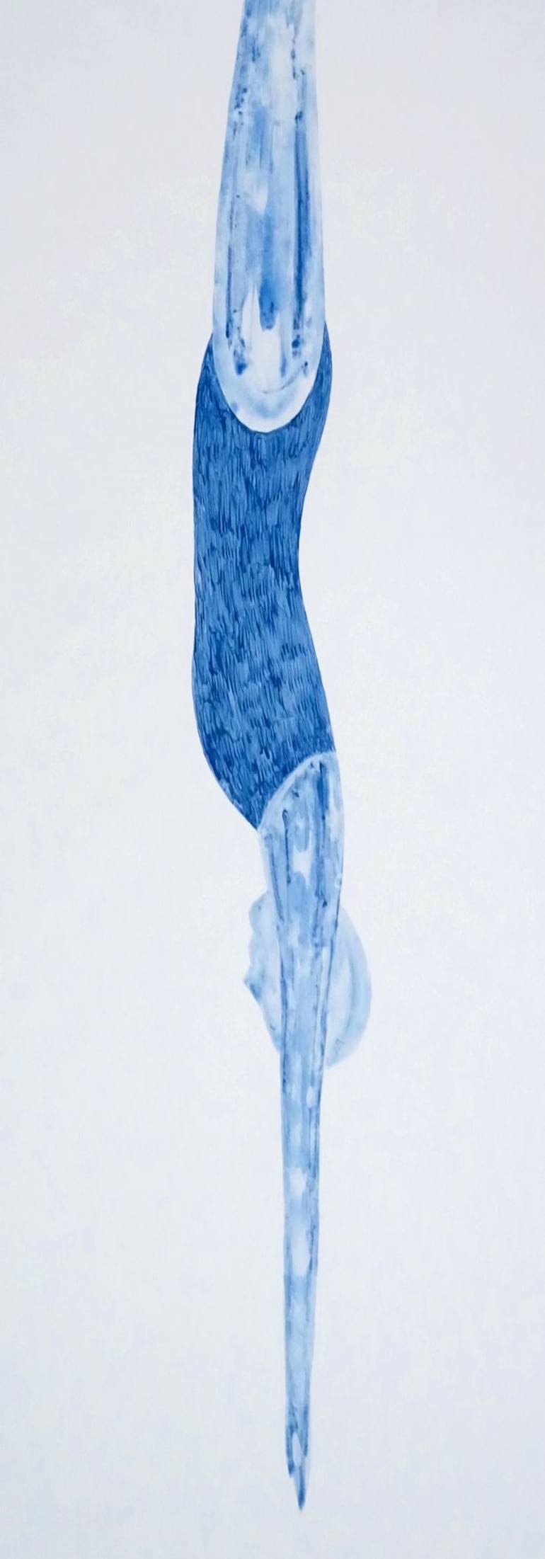 Dive. Acrylic on canvas 2025. Signed by Andy Shaw on reverse of artwork. Please note - the canvas will be shipped rolled securely in a tube. There is no support stretcher included in shipping. The additional photo shows plenty of white canvas surround for stretching.
