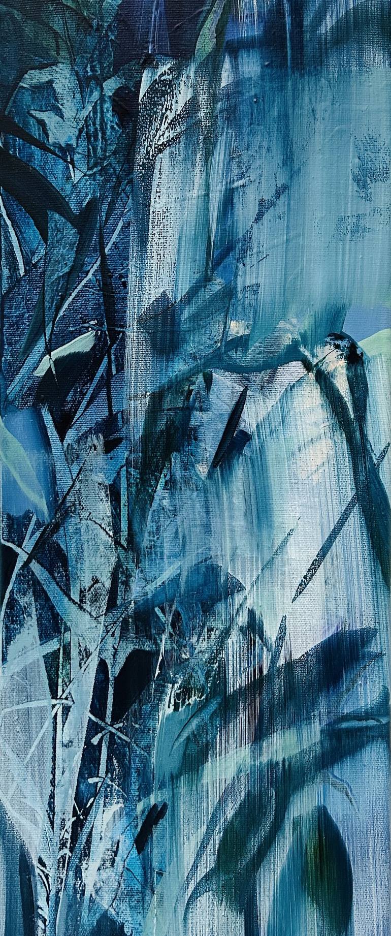Divine Virtue is a delightful standing artwork in captivating blues and purples, evoking a sense of divine virtue and a tranquil night in a serene garden. Its spontaneous and intuitive brushstrokes, along with the calming deep colors, create a visually engaging experience. Crafted with layers of oi...