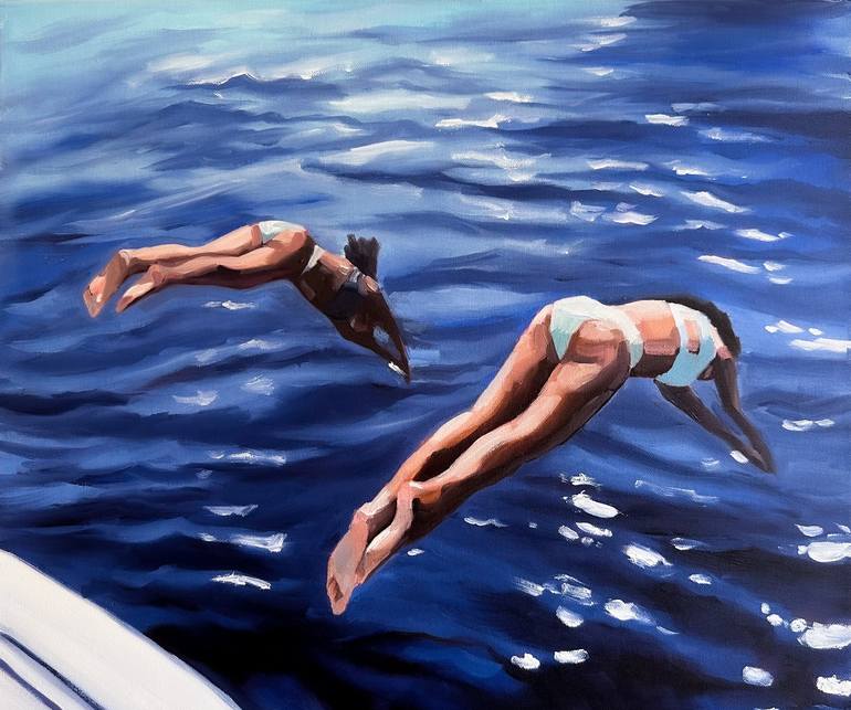 Title: Diving Summer is a small life. At this time, all problems fade into the background, you spend more time in the sun, planning a vacation. It's like you're wearing rose-colored glasses that help you take a little break from the hustle and bustle. -The artwork is painted with oil paints on a lin...