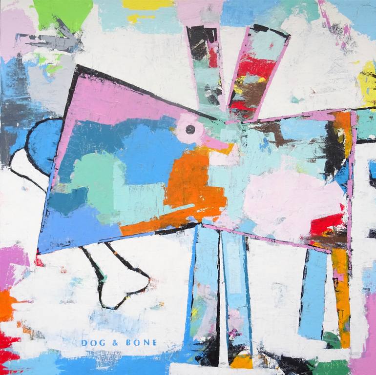 Dog & Bone Acrylic on canvas 2017 Signed on the reverse of canvas by Andy Shaw
