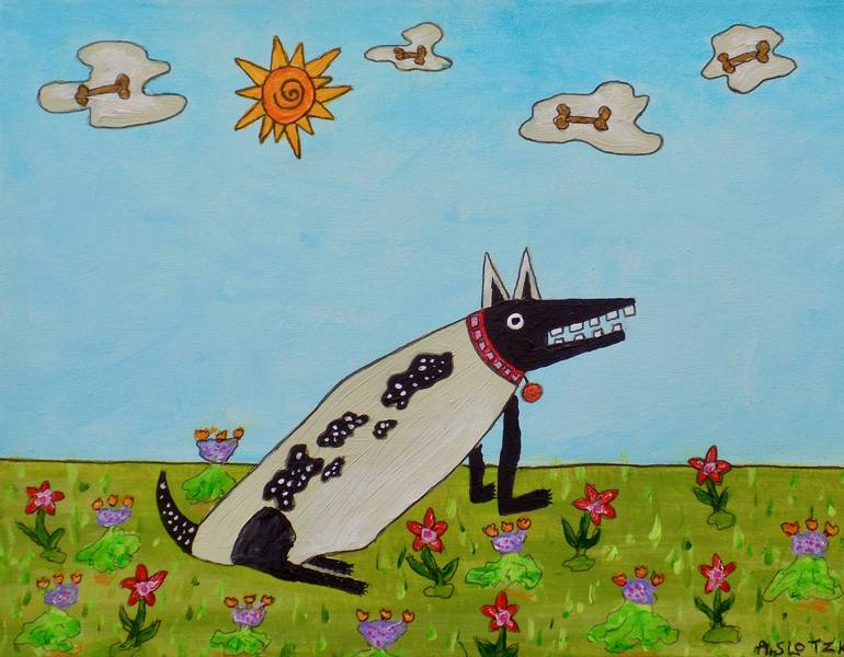I been living in Hawaii most of my life [ feel very lucky ] . The first thing you notice when you arrive here are the bright colors that all around you ,the flowers the ocean and the sky always bright. So for my painting.....always very bright colors ,I work in acrylic and ink and mostly paint some thing that connected to the ocean. I consider my style folk or naive style ,I like to call it a cheerful style.