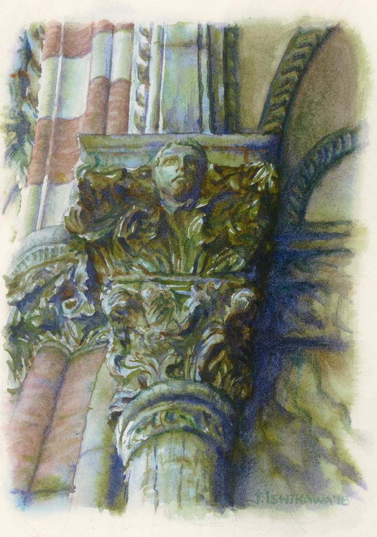 A friend was kind enough to bring me back home some paper from the Amatruda paper mill, in Italy - which dates back to the Fifteenth century. I only felt it right to do a classic subject on this classic paper, so I painted this small watercolor of a detail of the Venetian landmark, the Doge's Palace...