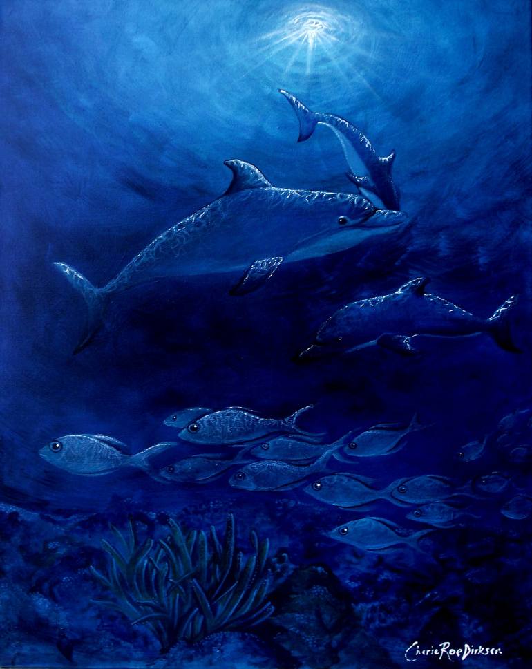 There is something magical about dolphins — their intelligent, gentle and peaceful nature has most of us captivated. Who doesn't light up when they see a dolphins broad smile? I wanted to achieve a watery depth in this painting and just loved working with the monotone cerulean blue hue layering. ...