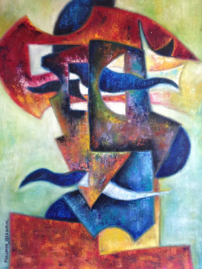 “Don Quixote Blurred”, a large abstract oil on canvas painting. Based on the legendary Don Quixote - Aleksandr created this abstract oil painting based on the artwork of Pavel Pepel who was one of his art teachers. Can you spot the moustache? Mixed technique using brush and palette knife and varn...