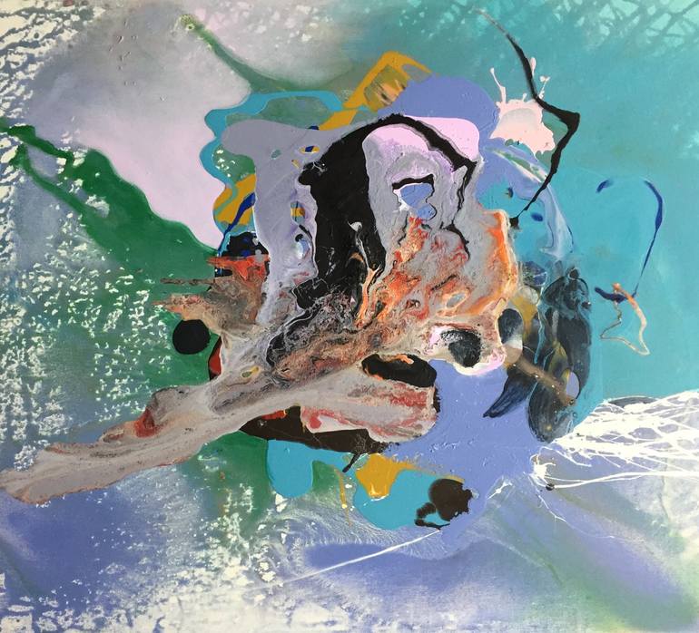 The artworks that I have been accumulating arise from observing how the clouds alter their shapes with the wishes of the wind, forming infinite chains of unrepeatable images, although beyond abstract images, clouds also interest me as a source of analogy between their moods and their literary interpretations, which leads me to make artworks with a metaphorical and even satirical theme. The magic of their metamorphoses becomes for me, in an obsession with the observation of light, darkness, movement and everything that it’s transmuted, being an important reference for my compositions; it is the landscape, the keynote, the level of the scale, to interpret ambiguous symbols, androgynous figures, an image that observe us giving the sensation that they come from a remote order. This challenges me as an artist to try to achieve the beyond, for being an act of creation with my own terms and internal emotions. I like to build, narrow and prepare my own canvas, it is my first encounter with wood, canvas and the creative process. Acrylic is my main medium, although sometimes I use mixed media, for example, ink, oil, charcoal, oil pastels, pencils, airbrush and other materials. I start by attacking the blank canvas spontaneously, each step builds on the previous step, leaving room for chance. Using concepts typical of abstract expressionism, lyrical abstraction and informalism. Undertaking the pictorial act from attitude and matter as absolute action, giving importance to the resources of intuition, accident, the vitality of the expressive aspect, the suggestive capacity of the surface and the automatism to transmit the energy of the gesture, at the same time, I assimilate the way to accentuate the vaporous color fields, alternating and merging the blue, red, green, yellow, gray, black, white and violet ranges. Using the cold and warm colors with their respective complementary colors to create contrasts where the perspective through the colors stands out for its leading role in each of my artworks, accentuating the expressive intensity and the feeling of concern that emanate from the surface. Each artwork is unique, the creation and development of each one can be a slow process that usually lasts days, weeks and even in some cases up to months in the drying and technical process to bring the artwork to its maximum point of aesthetic expression.