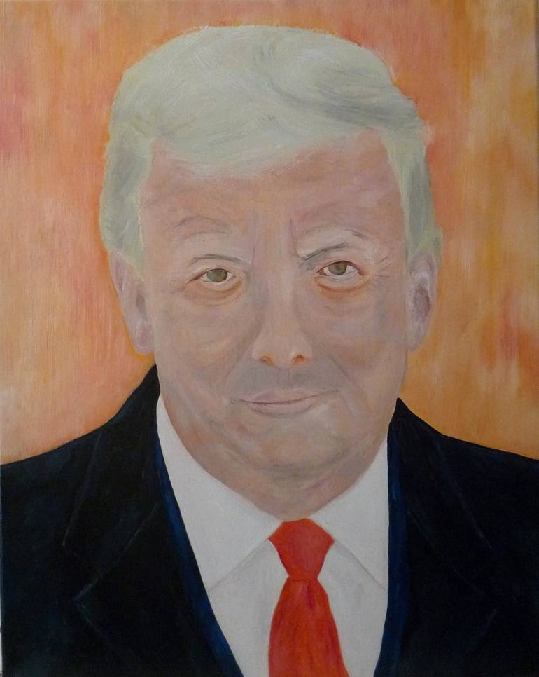 This picture was painted not far, geographically, culturally, architecturally, from where Donald Trump's mum, Mary Ann Trump (née MacLeod) was born and raised. She went off to Queens, NYC. Land of opportunity. I suggest that I've captured Mr. Trump's, at times, mischievous look. I am not included...