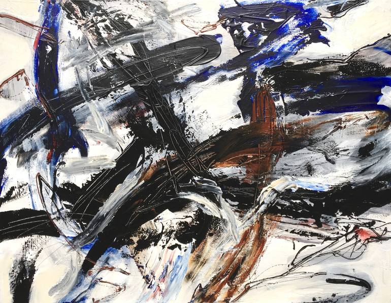 'Describing her work as Lyrical abstraction, Krisztina Horvath creates expressive and intuitive paintings which lay bare upon the canvas, composed of frenetic brushstrokes and communicative marks in paint. Although working predominantly in acrylic and oil, other kinds of media such as ink, spray paint, graphite and oil bar also play their part in her creative process. Titles are an important aspect of the artist’s works as it allows us a glimpse into the underlying thoughts, feelings and reference sources that have driven her while creating the abstract piece. Climate change, environmental issues and the problematic human impacts to life on earth are all subjects that move Horvath to create new paintings, using the abstract expressionistic style to express modern social issues and raise awareness through her art. Born in Hungary, Horvath has lived in the Netherlands since childhood. recently her work has been shown in Brussels, Milan and New York.' Inside Artist Magazine.