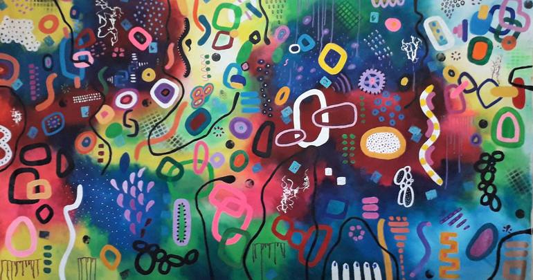 XXL Abstract 190 x 100cm Doorway to a Dream Colourful, Bold and Vibrant, a real eye-catcher, makes a great focal point Size 190 X 100 cms Professional Quality Canvas (sent rolled) Varnished for protection Room for reference This painting was created on loose high quality canvas. Due to its large s...