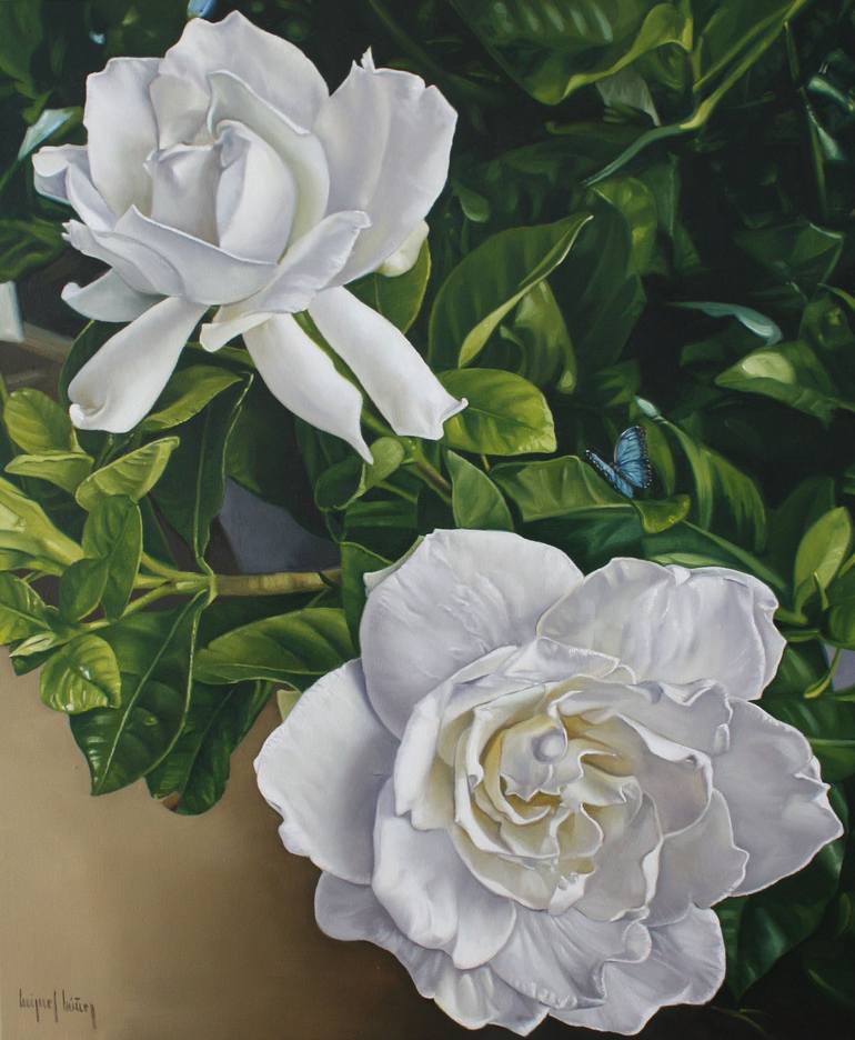 La naturaleza misma es quien me ha inspirado en ésta obra, donde los jazmines, mi flor favorita son el tema principal de la composición, donde aparece una mariposa azul simbolo de la inmortalidad y el renacer , renacer en el proceso mismo de ésta tan adorada flor y de la naturaleza toda.