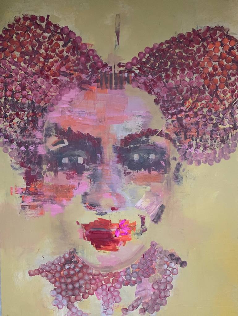 Inspired by the comedia dell'arte characters, I conveyed a theatrical portrait made mostly of dots, comic style. Ready to hang, no need to frame it as sides of canvas are painted