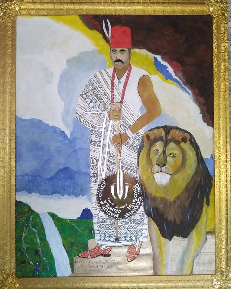 Painting is oil on canvas spread on board, Golden frame and dis mountable. Multi colored but dominant shades of blue. Nature support and environment friendly. Dr. Godwin Maduka a pain doctor at Las Vegas Institute U.S.A, an environmentalist, philanthropist, physician with the biggest medical resear...